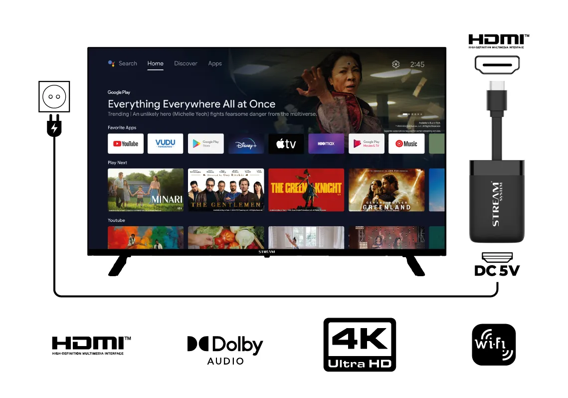 هو جهاز سهل الاستخدام يمكنك توصيله بتلفازك HD/FHD/UHD ليصبح تلفاز أندرويد تيفي.